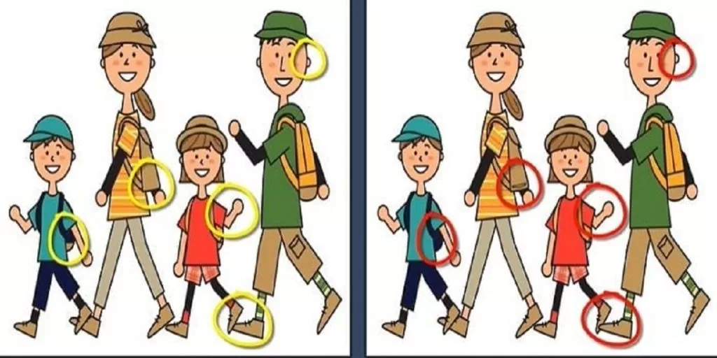 An IQ test is much more than just solving logical and mathematical problems. It can also test other intellectual abilities, including vision and concentration. This particular challenge involves comparing two almost identical images of a happy family and spotting the five subtle differences between them.