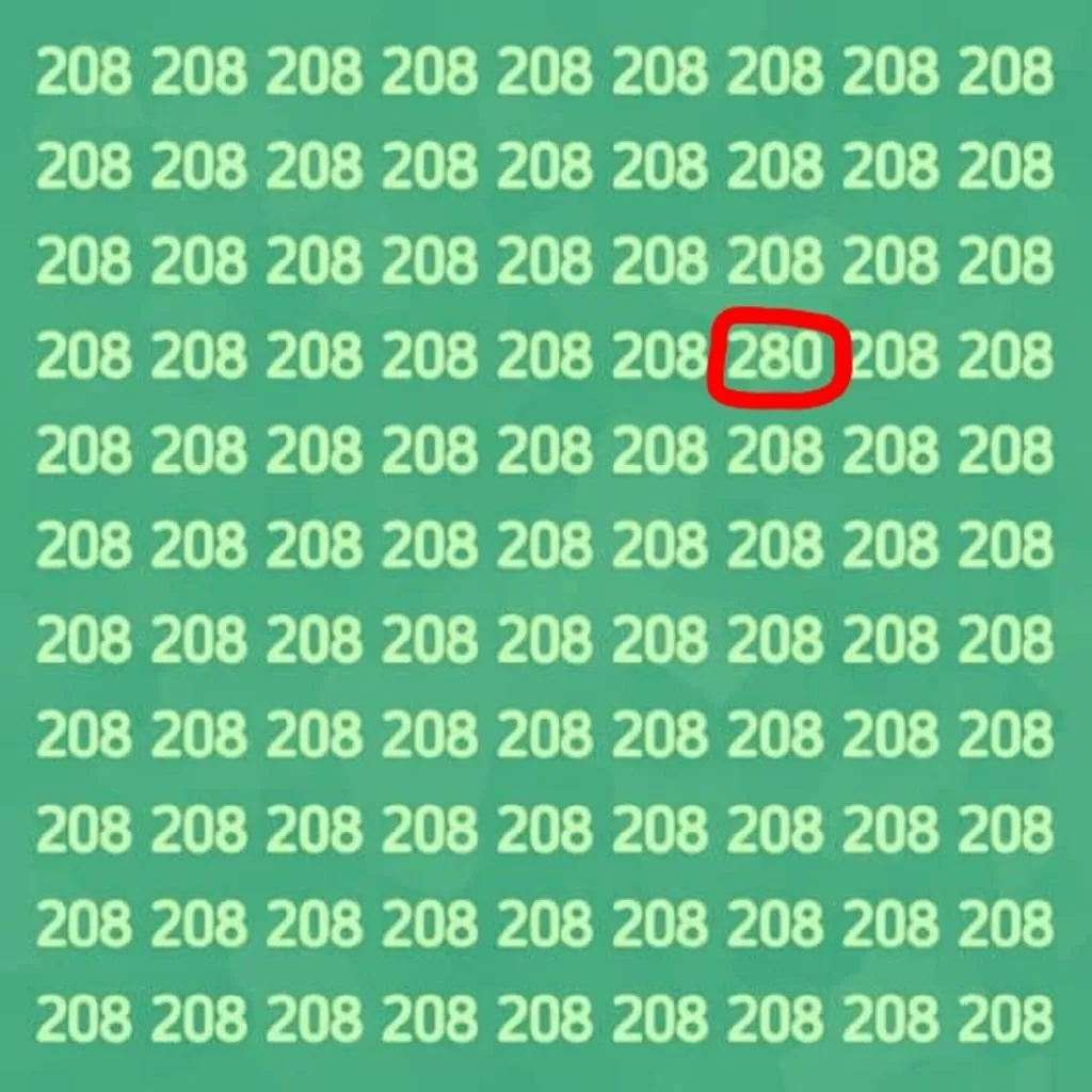 So, do you think you can spot the elusive number “280” in less than 10 seconds? To check the solution, head to the next page and see if you belong to the elite 15% who have succeeded!